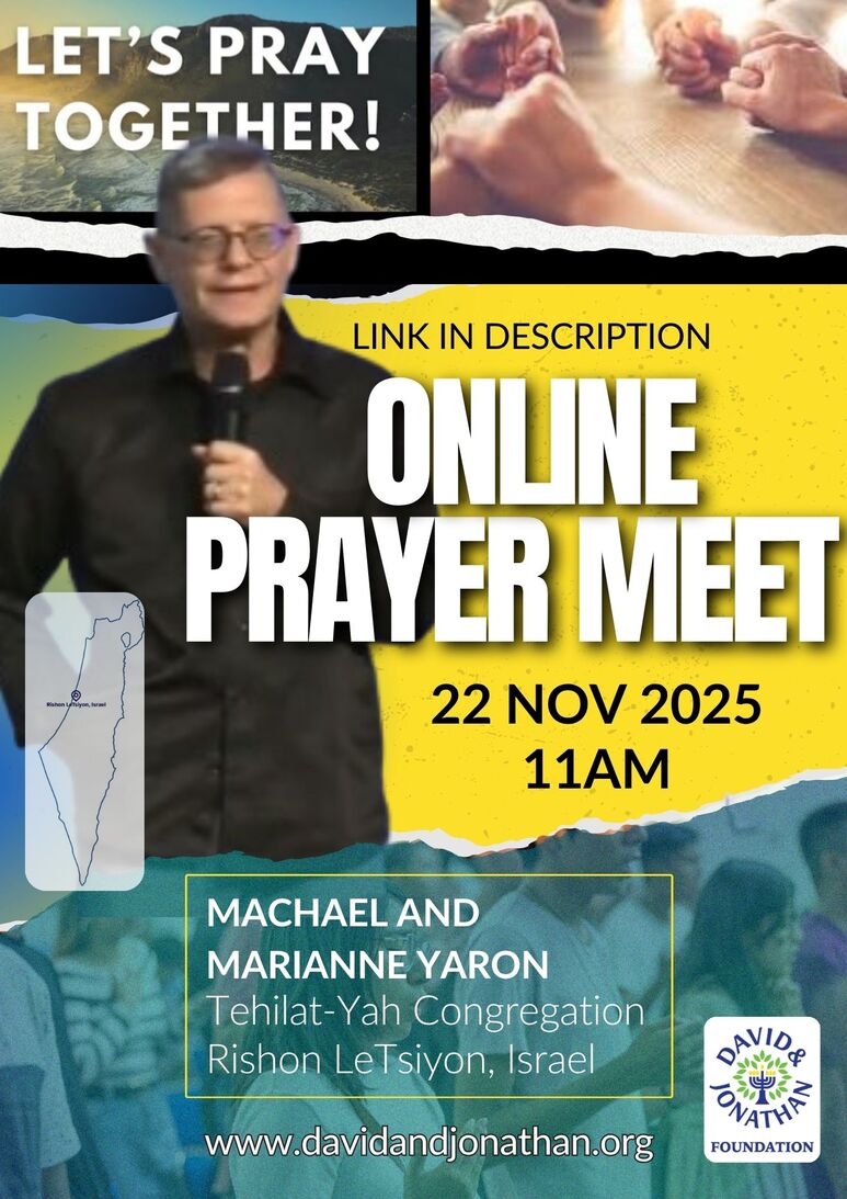 We want to invite you to join us for zoom prayer this Saturday, November 22, 2025, at 11 o'clock AM Israeli time.